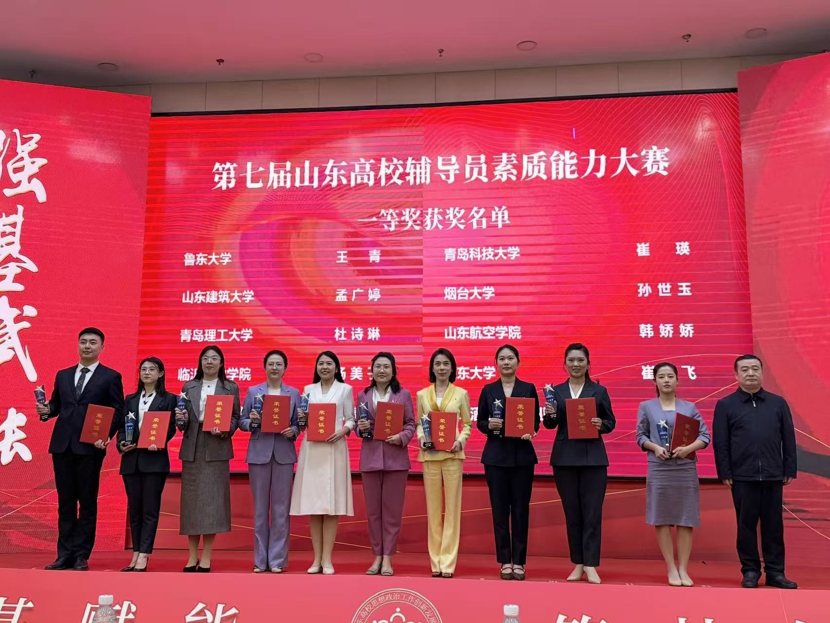 【本站讯】11月2日,由中共山东省委教育工委主办、山东高校思想政治工作创新发展中心(山东建筑大学)承办的第七届山东高校辅导员素质能力大赛在济南落幕。本届大赛共有来自全省高校的179名辅导员参赛,设置基础知识测试、理论宣讲、谈心谈话、案例研讨四个环节,全面考察辅导员的理论水平、职业素养和解决实际问题的能力。经过激烈角逐,共产生一等奖10名、二等奖15名、三等奖25名。其中,AC米兰官方网站法学院辅导员孙世玉斩获一等奖,土木工程学院辅导员徐薇薇荣获三等奖,这是继2023年第六届赛事以来AC米兰官方网站再次斩获山东高校辅导员素质能力大赛最高奖项。